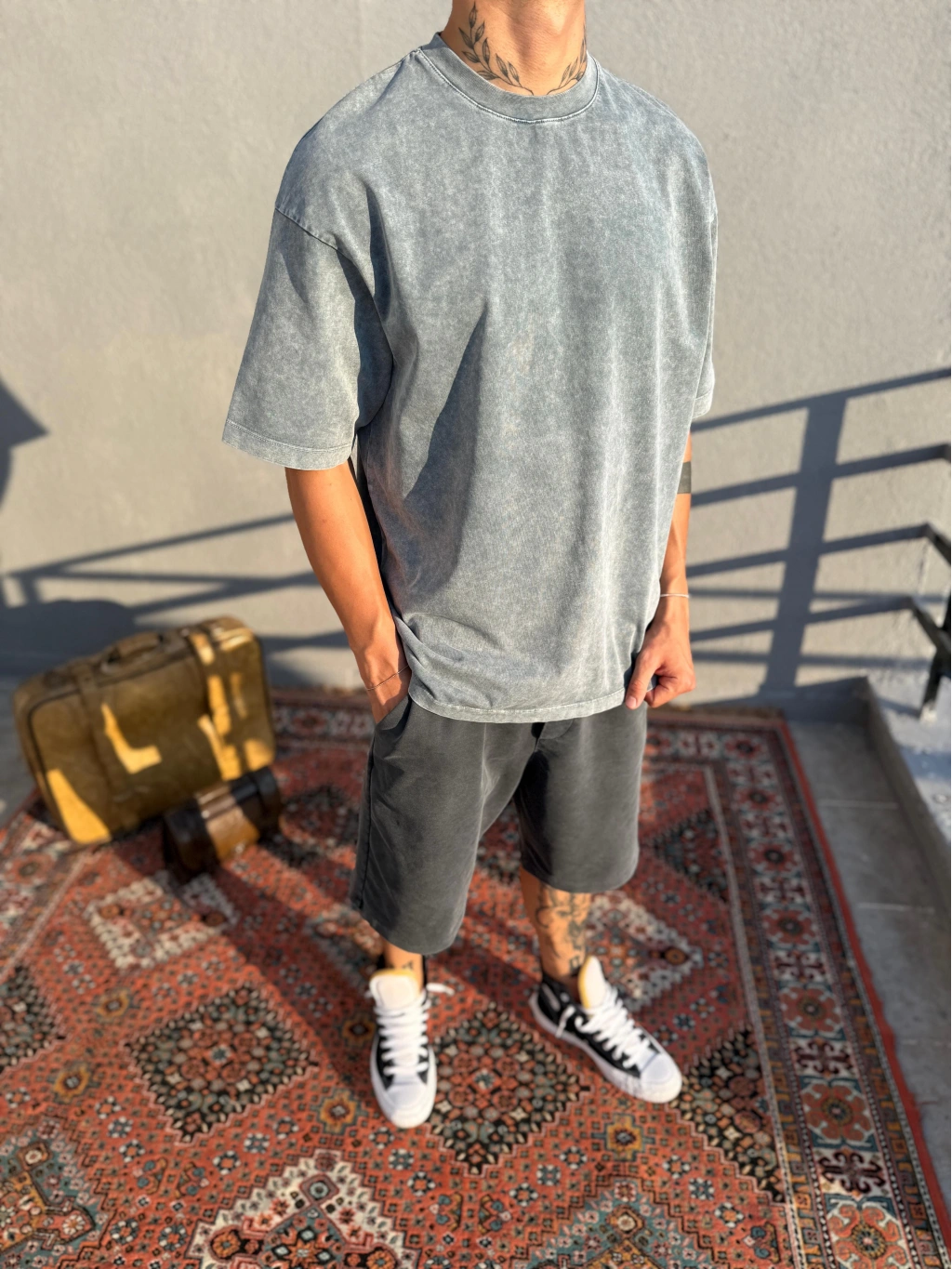 Koyu Gri Asit Yıkamalı Oversize T-Shirt