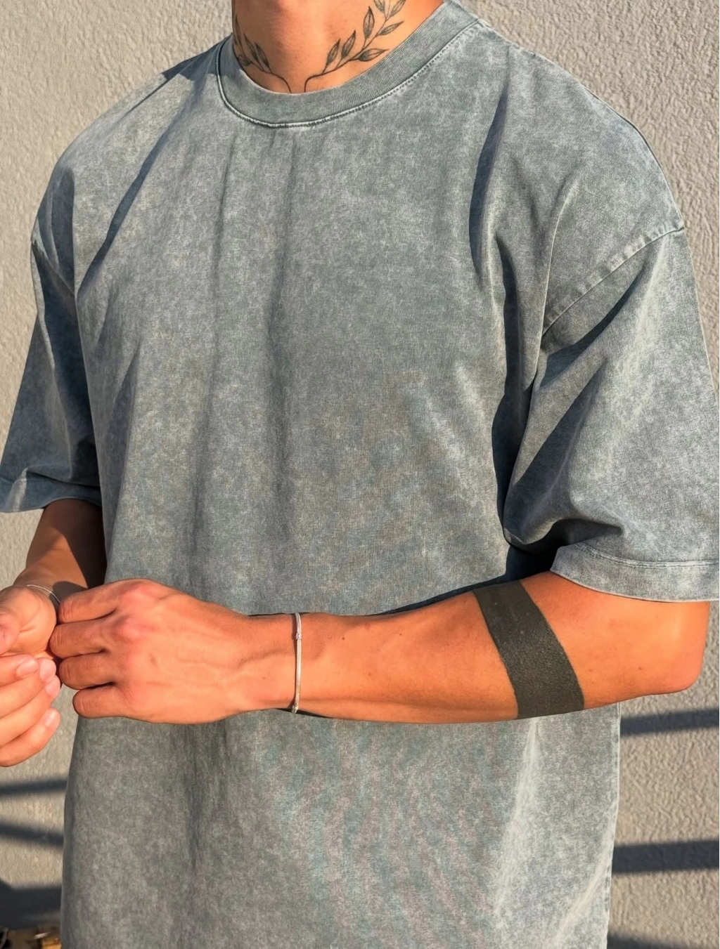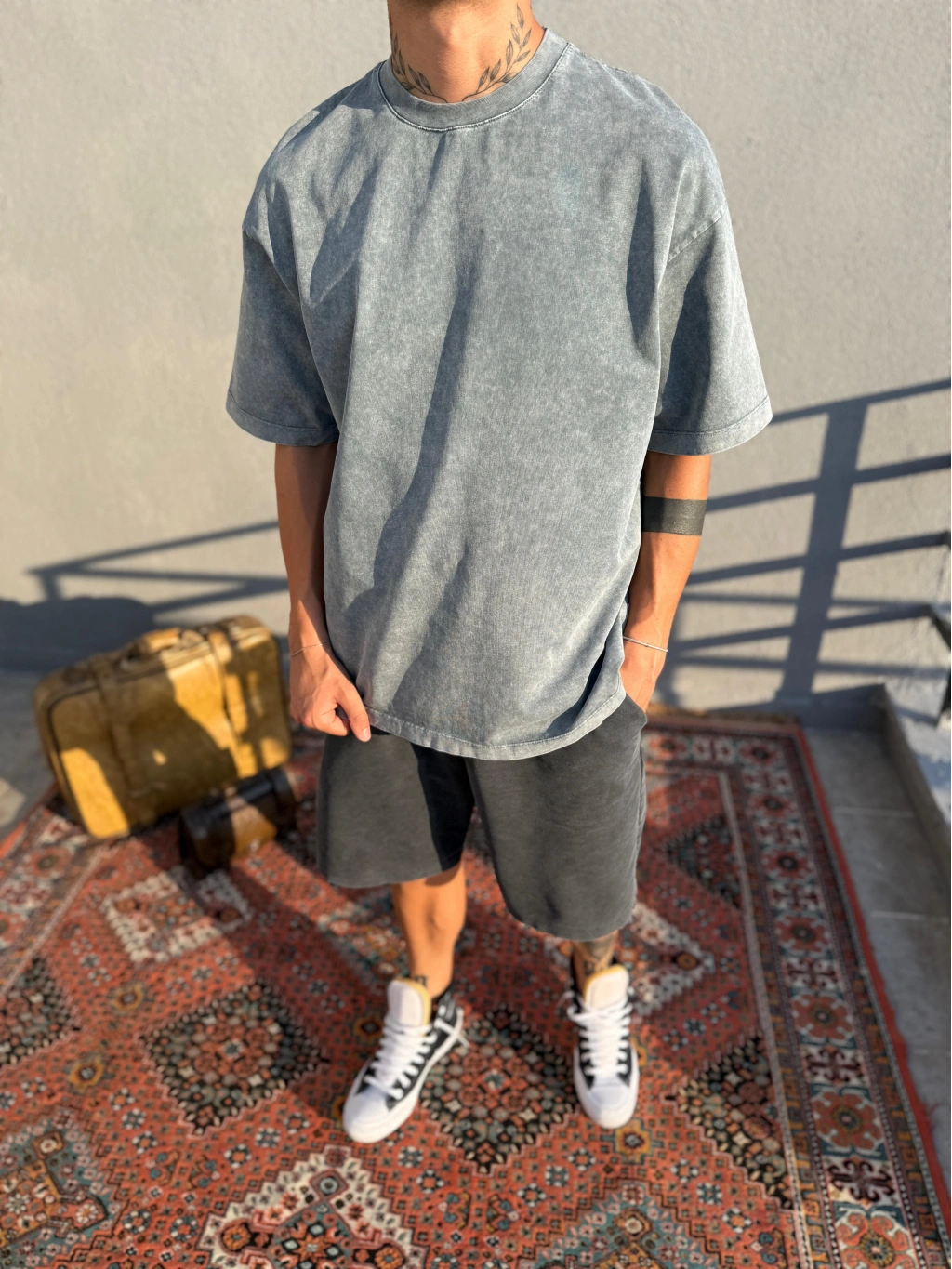 Açık Gri Asit Yıkamalı Oversize T-Shirt