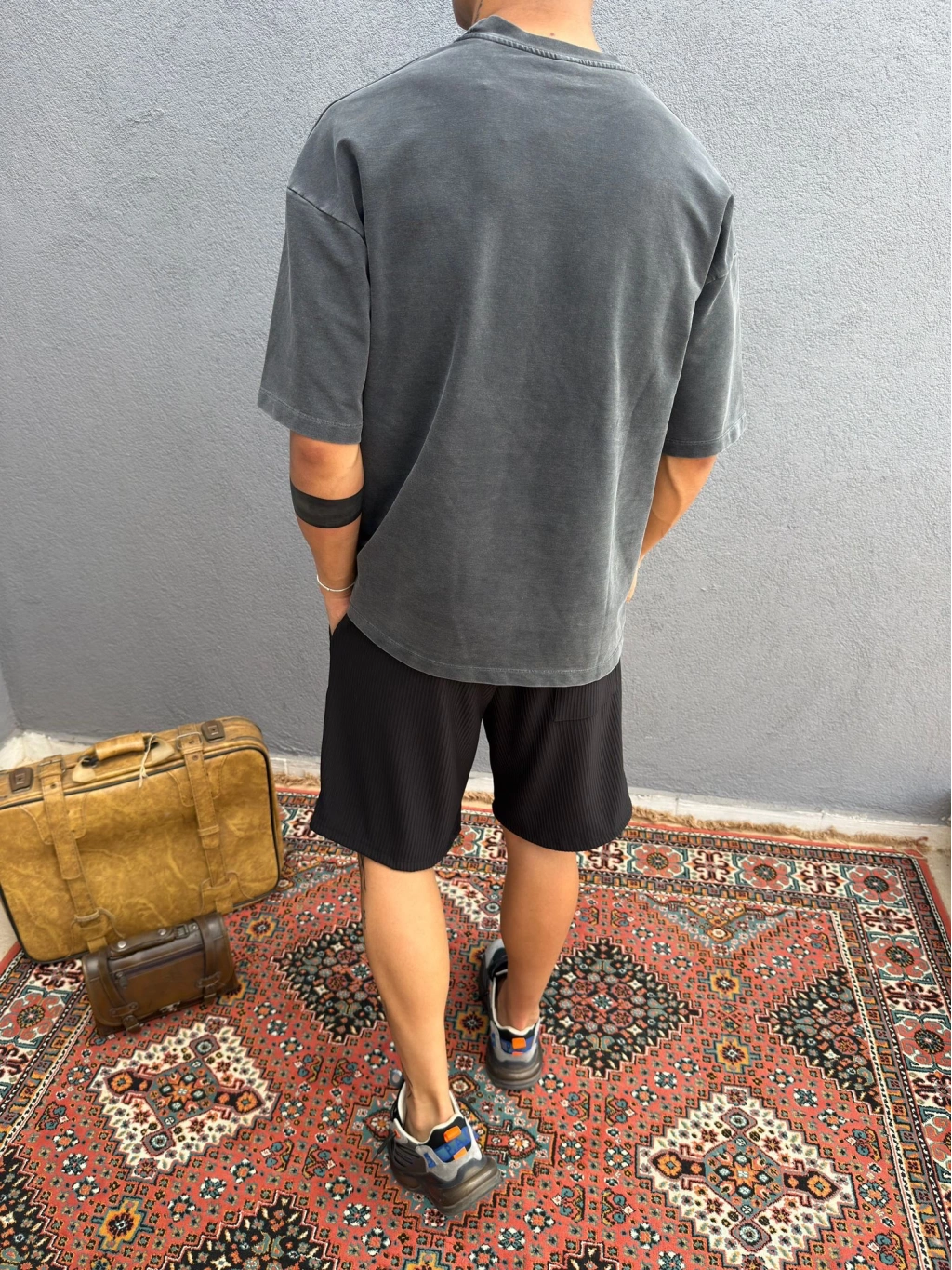 Koyu Gri Asit Yıkamalı Oversize T-Shirt