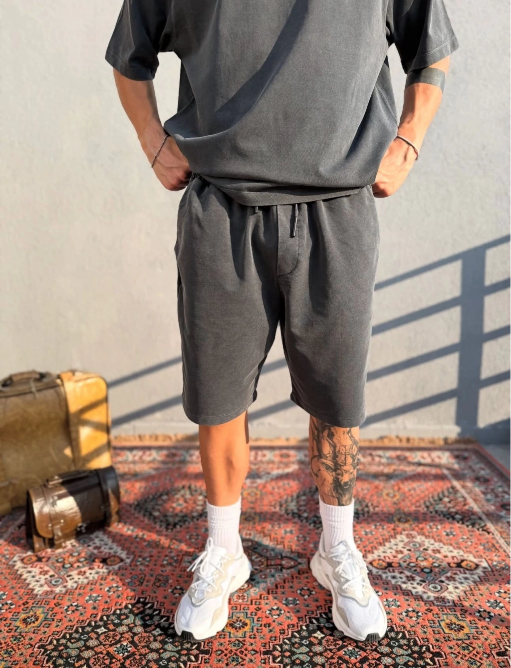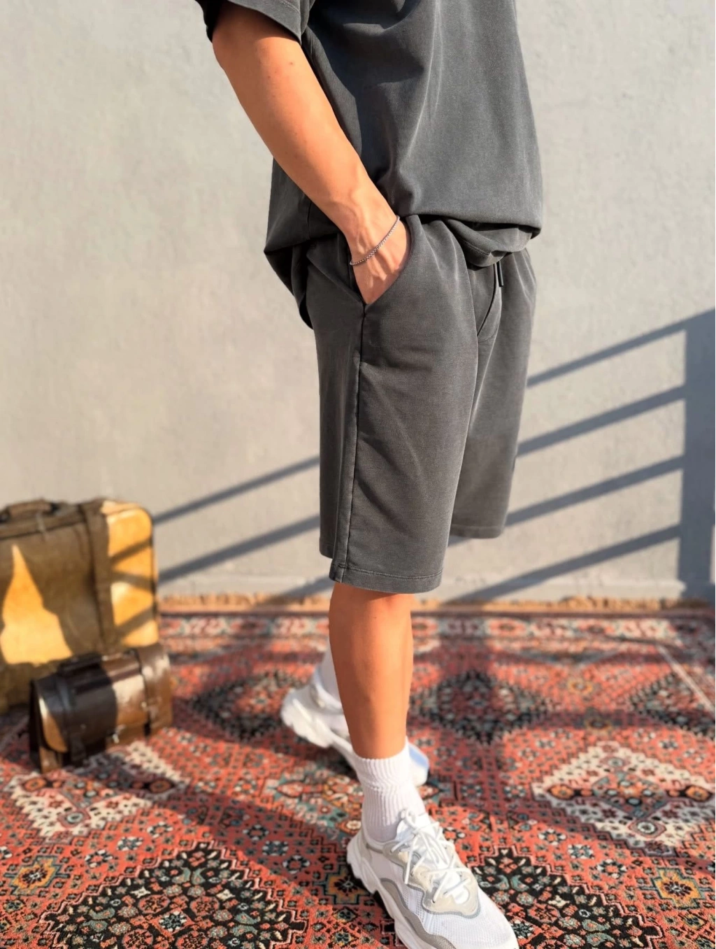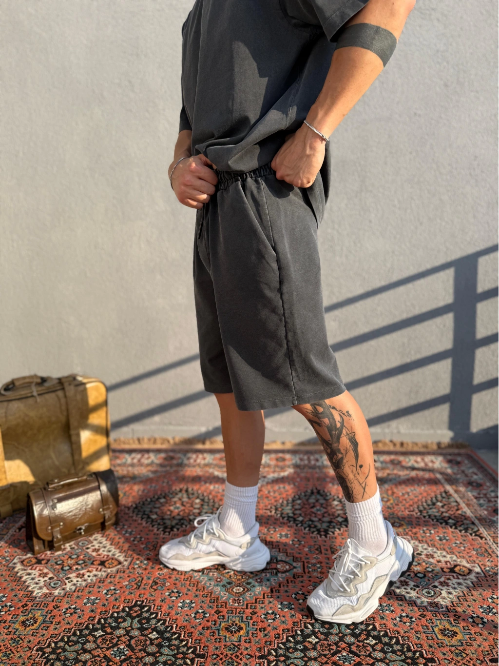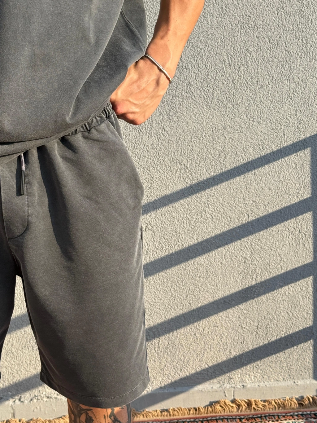 Koyu Gri Asit Yıkamalı Şort